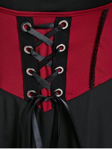 Plus Size Lace Up Cold Shoulder Flare Sleeves High Low Ruched Renaissance Corset Dress - Red - 1x | Us 14-16
