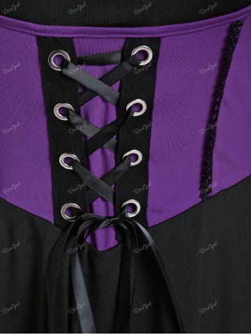 Plus Size Lace Up Cold Shoulder Flare Sleeves High Low Ruched Renaissance Corset Dress - Purple - 4x | Us 26-28