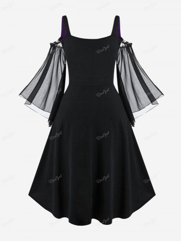 Alternative & Gothic Dress > Plus Size Lace Up Cold Shoulder Flare Sleeves High Low Ruched Renaissance Corset Dress