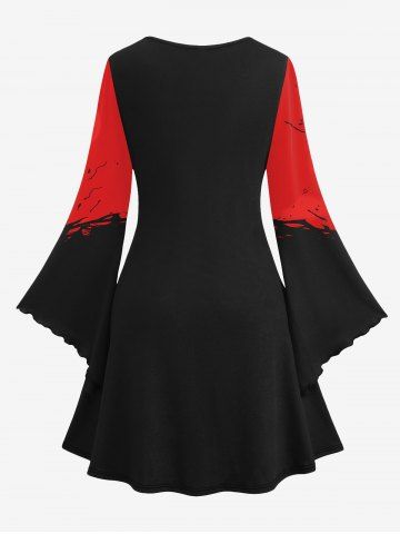 Gothic 3D Bloody Skulls Print Flare Sleeves Halloween A Line Dress - Black - Xs