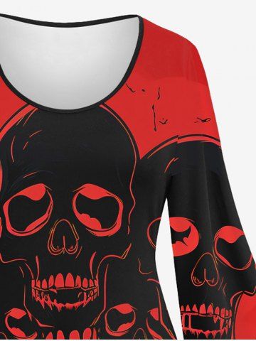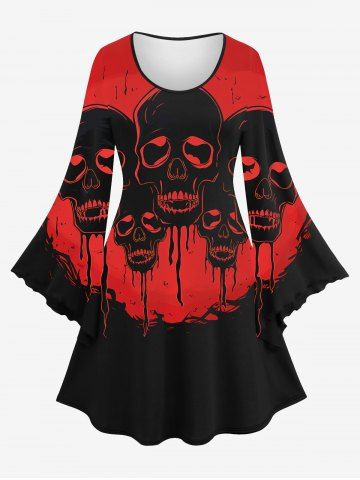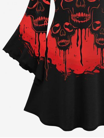 Gothic 3D Bloody Skulls Print Flare Sleeves Halloween A Line Dress - Black - 4x