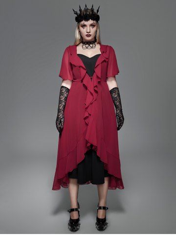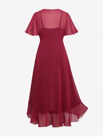 Gothic Cami Dress and Lettuce Trim Tied Flutter Sleeves Dress Set - Red - 3x | Us 22-24