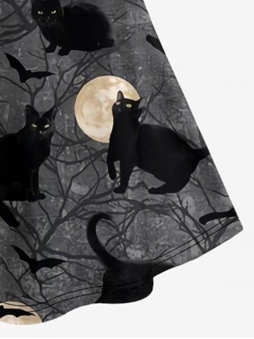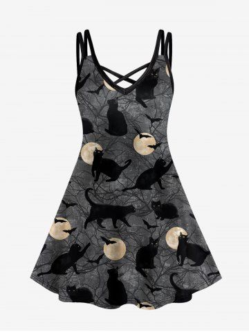 i*****y5Gothic Cat Moon Bat Print Crisscross Cami DressColor: BLACK Size: 3XThis dress is so cute if you are a cat liar, you need it but it does run large so make sure you size down so you look cute. My husband loves this dress on me!
