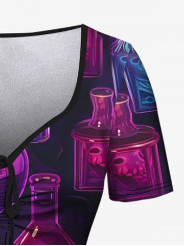 Gothic Colorful Bottle Lamp Glitter Print Cinched Dress - Purple - S