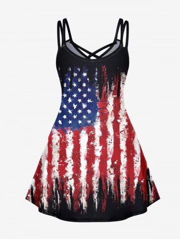 Gothic Distressed American Flag Print Crisscross Detail Sleeveless Dress - Black - 1x | Us 14-16