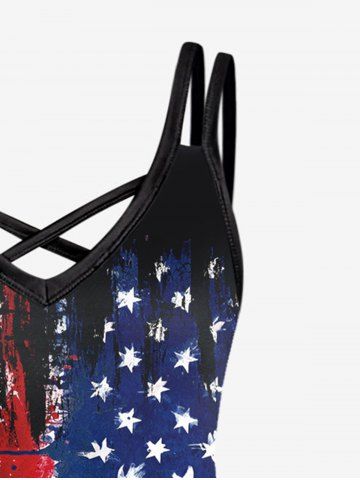 Gothic Distressed American Flag Print Crisscross Detail Sleeveless Dress - Black - 4x | Us 26-28