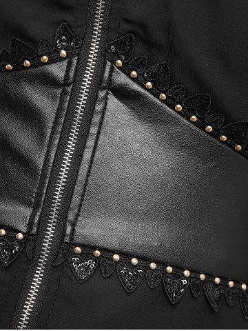 Gothic Flare Sleeves Turn-down Collar Cross Half Zipper Lace Trim Layered PU Panel Corset Chiffon Solid A Line Dress - Black - L | Us 12