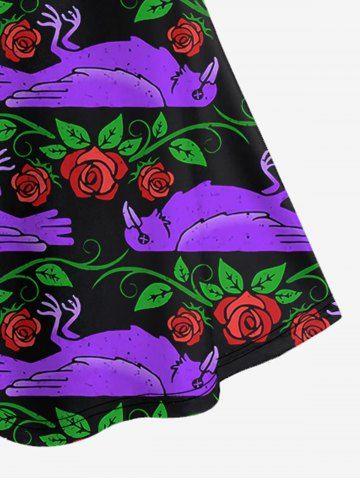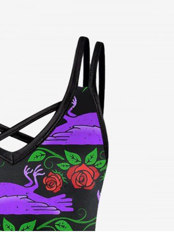 Gothic Floral Eagle Leaf Print Crisscross Cami Dress - Purple - Xs