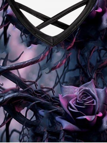 Gothic Flower Leaves Print Crisscross Cami Dress - Black - 3x