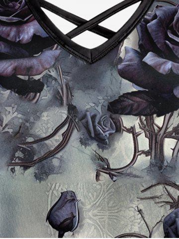 Gothic Flower Print Crisscross Cami Dress - Black - 8x
