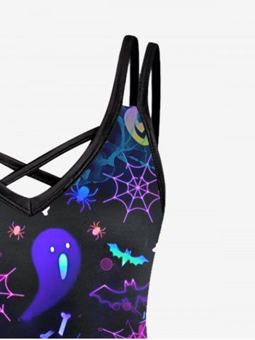 Gothic Ghost Pumpkin Bat Spider Web Print Crisscross Cami Dress - Multi-a - M