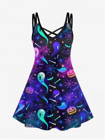 Gothic Ghost Pumpkin Bat Spider Web Print Crisscross Cami Dress - Multi-a - L