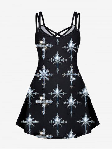 Alternative & Gothic Dress > Gothic Glitter Cross Print Crisscross Cami Dress
