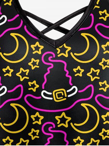 Gothic Hat Moon Star Print Crisscross Cami Dress - Black - S