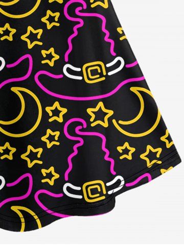 Gothic Hat Moon Star Print Crisscross Cami Dress - Black - 3x