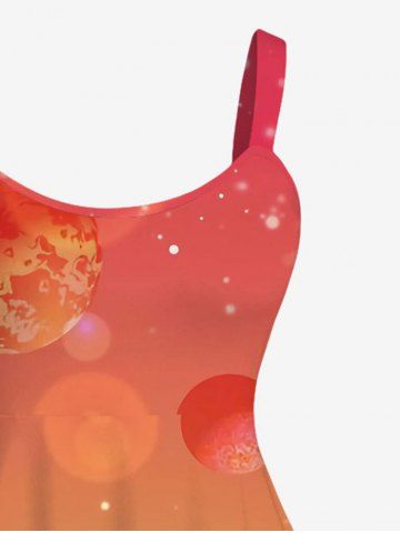 Gothic Moon Lovers Heart Grass Galaxy Printed Valentines Ombre A Line Tank Dress - Orange - M