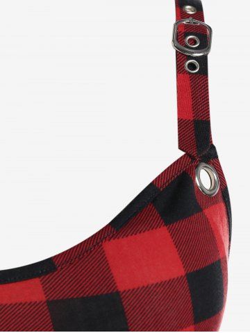 Gothic Plaid Crisscross Backless Buckles Straps A Line Sleeveless Dress - Red - L | Us 12