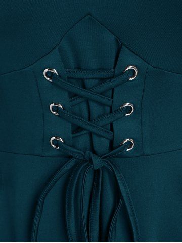 Gothic Plus Size Cold Shoulder Lace Up Grommet Handkerchief Chiffon Asymmetric Dress - Blue - 1x | Us 14-16