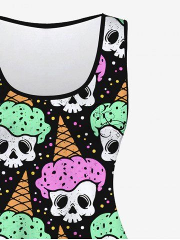 d*****l5Gothic Skull Ice Cream Print Sleeveless A Line DressColor: BLACK Size: L | US 12Cute dress, vivid colors and a. Cute print. Fabric movement is pleasing. Light super soft poly-blends.