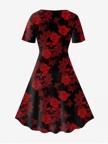 r*****e5Gothic Skull Rose Print A Line Tee DressColor: RED Size: 5X | US 30-32Gothic a line dress. really like the design and flowers over all.nvery pretty flowers make those eyes delight in happiness & joy