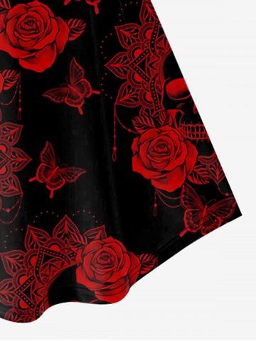 Gothic Skull Rose Print A Line Tee Dress - Red - 3x | Us 22-24