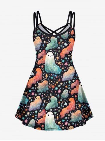 Alternative & Gothic Dress > Gothic Star Cloud Ghost Print Crisscross Cami Dress