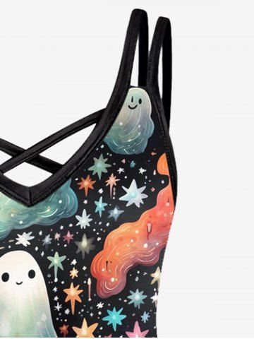 Gothic Star Cloud Ghost Print Crisscross Cami Dress - Black - 2x