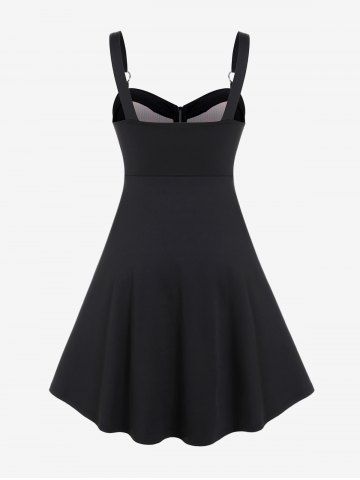 Gothic Plus Size Plaid Colorblock Print Lace Up Half Zipper Patchwork Fit and Flare Dress - Black - 4x | Us 26-28
