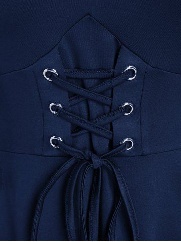 Gothic Plus Size Cold Shoulder Lace Up Grommet Handkerchief Chiffon Asymmetric Dress - Deep Blue - L | Us 12