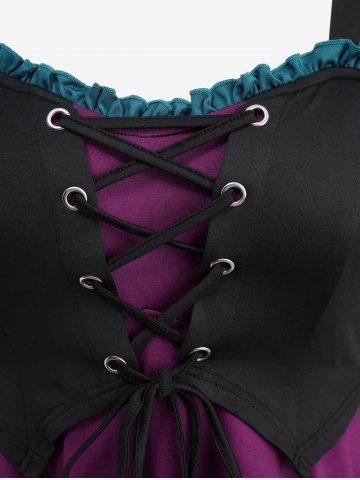 Gothic Plus Size Cold Shoulder Lace Up Layered Handkerchief Asymmetric Corset Renaissance Dress - Multi-f - 5x | Us 30-32
