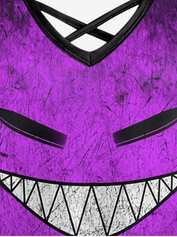 Plus Size Demon Face Print Crisscross Cami Dress - Purple - Xs