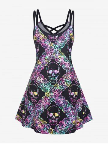 C*****a5Plus Size Gothic Skull Print Crisscross DressColor: BLACK Size: 2X | US 18-20I really like the print, the colors are vibrant and the design is clear. I bought it for a gothic concert.