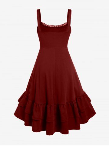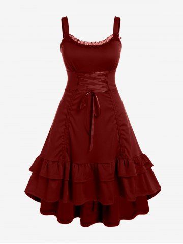 Alternative & Gothic Dress > Plus Size Lace-trim Lace-up Layered Ruffled Cinched Ruched Sleeveless Midi Dress