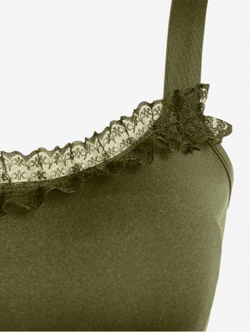 Plus Size Lace-trim Lace-up Layered Ruffled Cinched Ruched Sleeveless Midi Dress - Light Green - 5x | Us 30-32