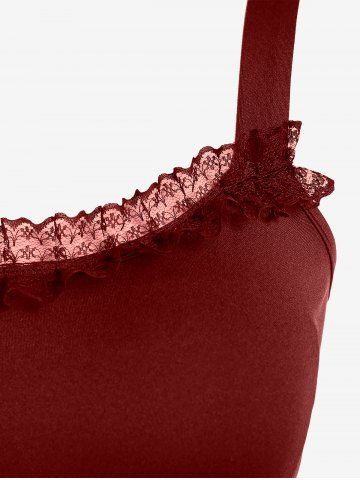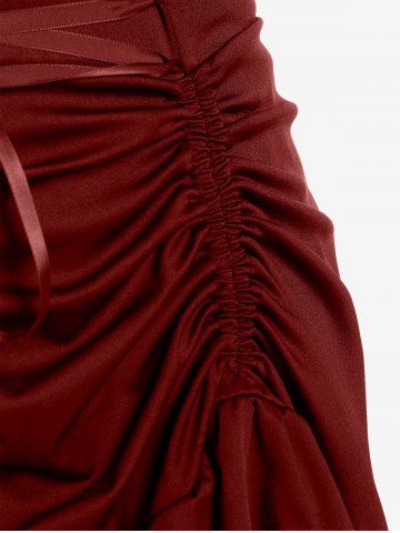 Plus Size Lace-trim Lace-up Layered Ruffled Cinched Ruched Sleeveless Midi Dress - Deep Red - S | Us 8