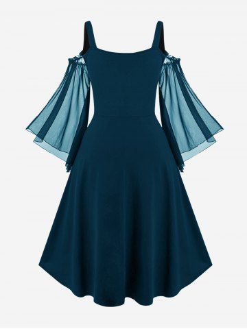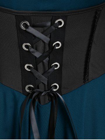 Plus Size Lace Up Cold Shoulder Flare Sleeves High Low Ruched Renaissance Corset Dress - Sky Blue - 3x | Us 22-24