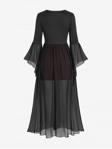 Gothic Plus Size Lace Up Ruched Ruffles PU Leather Stripes Patchwork Dress - Black - L | Us 12