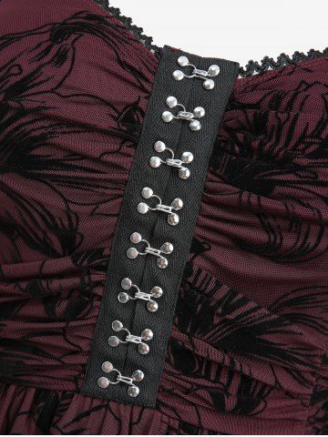 Gothic Plus Size Lily Flowers Flocking Lace Trim Ruched Asymmetrical Tank Dress - Deep Red - 2x | Us 18-20