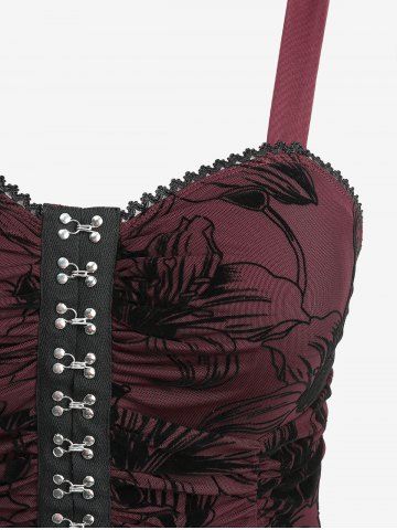 Gothic Plus Size Lily Flowers Flocking Lace Trim Ruched Asymmetrical Tank Dress - Deep Red - 4x | Us 26-28
