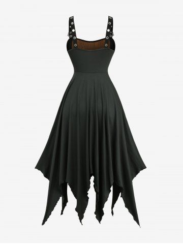 Gothic Plus Size Ripped Mesh Lace Up Grommets Hook And Eye Asymmetrical Tank Dress - Black - 2x | Us 18-20