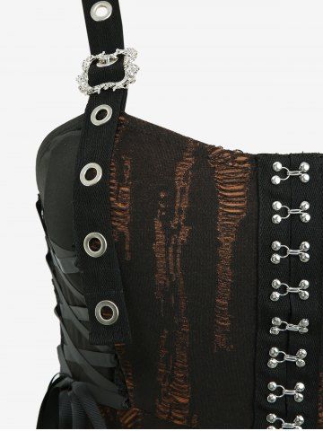 Gothic Plus Size Ripped Mesh Lace Up Grommets Hook And Eye Asymmetrical Tank Dress - Black - 5x | Us 30-32