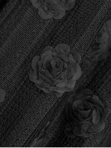 Gothic Plus Size Rose Flower Appliques Sheer Lace Trim PU Leather Waist Ruffles Asymmetrical Tank Dress - Black - L | Us 12