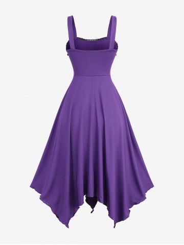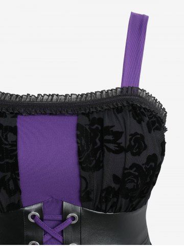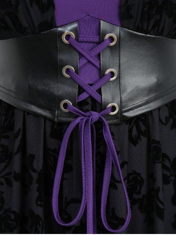 Gothic Plus Size Rose Flower Flocking Lace Up Ruffles Asymmetrical Tank Dress - Purple - 5x | Us 30-32