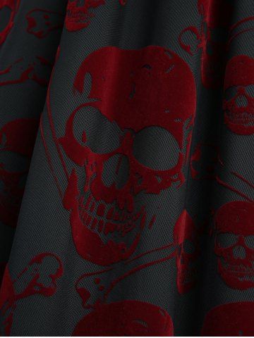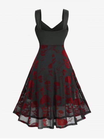 Alternative & Gothic Dress > Gothic Plus Size Ruched Braided Panel Skulls Flocking Mesh Tank Dress