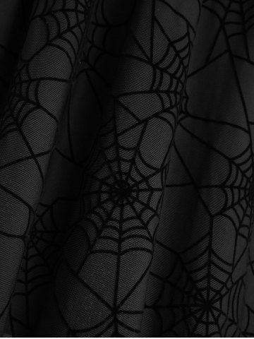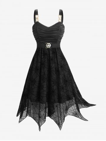 Alternative & Gothic Dress > Plus Size Ruched Bust Spider Web Flocking Handkerchief Dress with Removable Belt