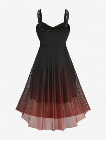 Alternative & Gothic Dress > Plus Size Skull Fishnet Cross Dip Dye Ombre Mesh Strap Grommet A Line Cami Dress