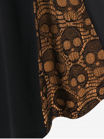 Alternative & Gothic Dress > Plus Size Skull Fishnet Panel Ruched Crisscross O-Ring Buckle Dress