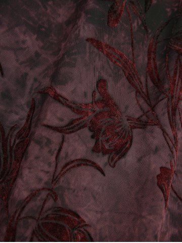 Gothic Plus Size Tie Dye Print Floral Flocking Ruched Buckles Panel Cold Shoulder Tank Dress - Deep Red - 4x | Us 26-28