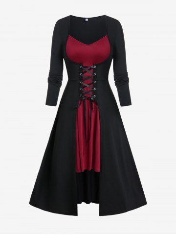 Gothic Two Tone Lace-up Asymmetrical Midi Dress - Black - 1x | Us 14-16