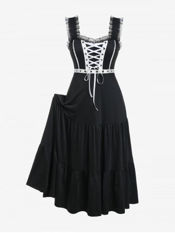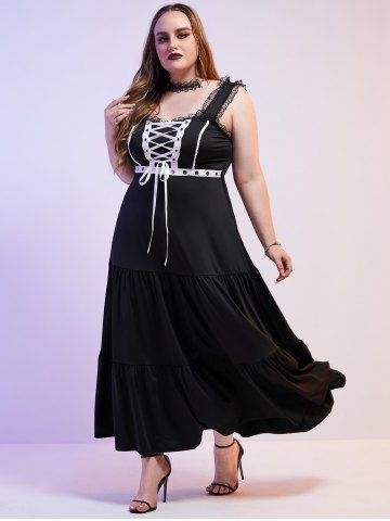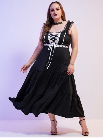 G*****y5Plus Size Lace Up Grommets Fit and Flare DressColor: BLACK Size: 3X | US 22-24Great dress. A-line. Stretchy. Comfy. I get loads of compliments with it. I would size down.
